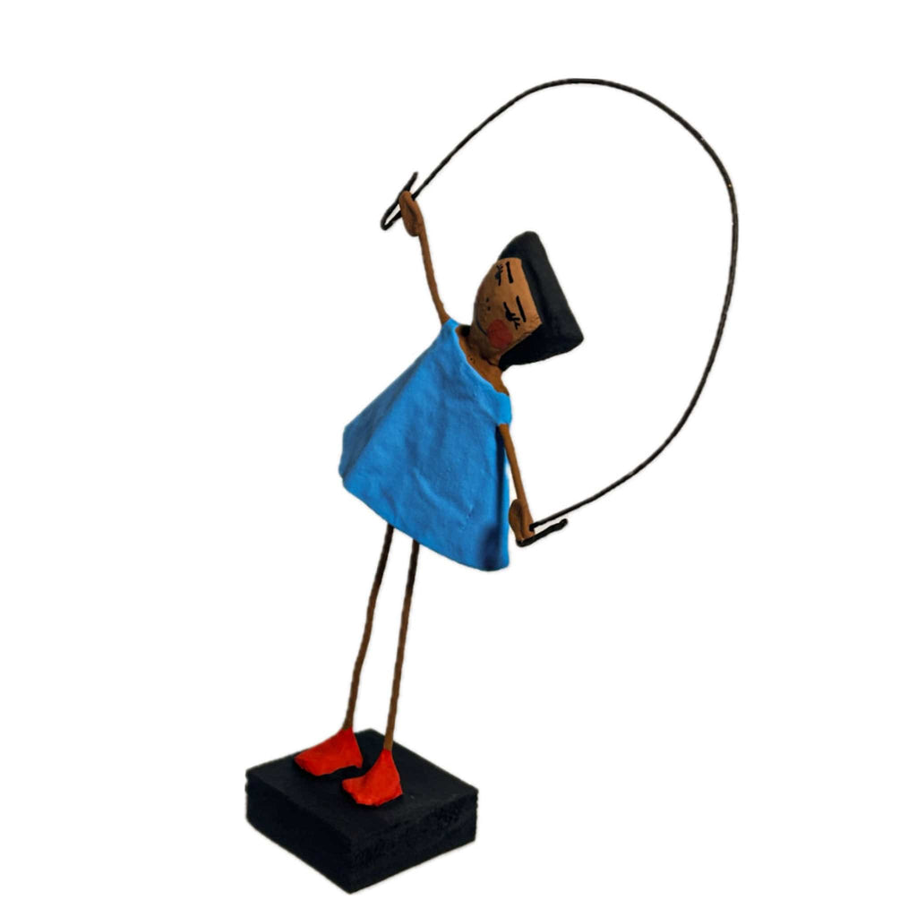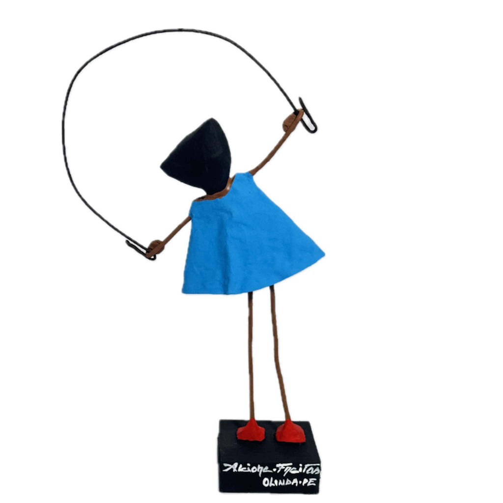 Escultura Brincadeira Infantil Pulando Corda - Azul 01